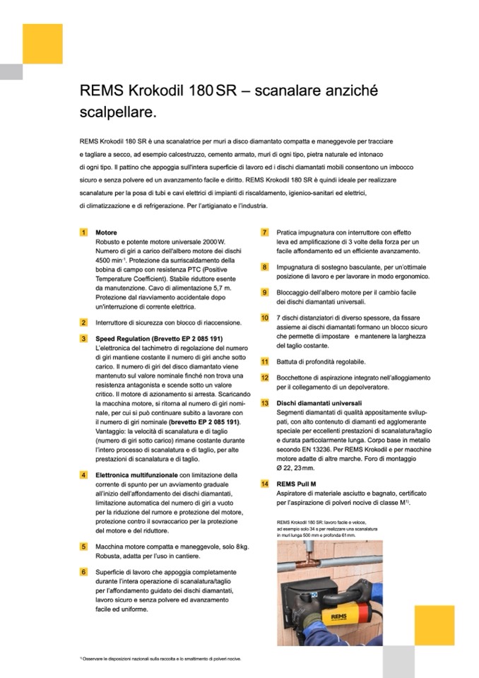 REMS Krokodil 180 SR è una scanalatrice per muri a disco diamantato compatta e maneggevole per tracciare