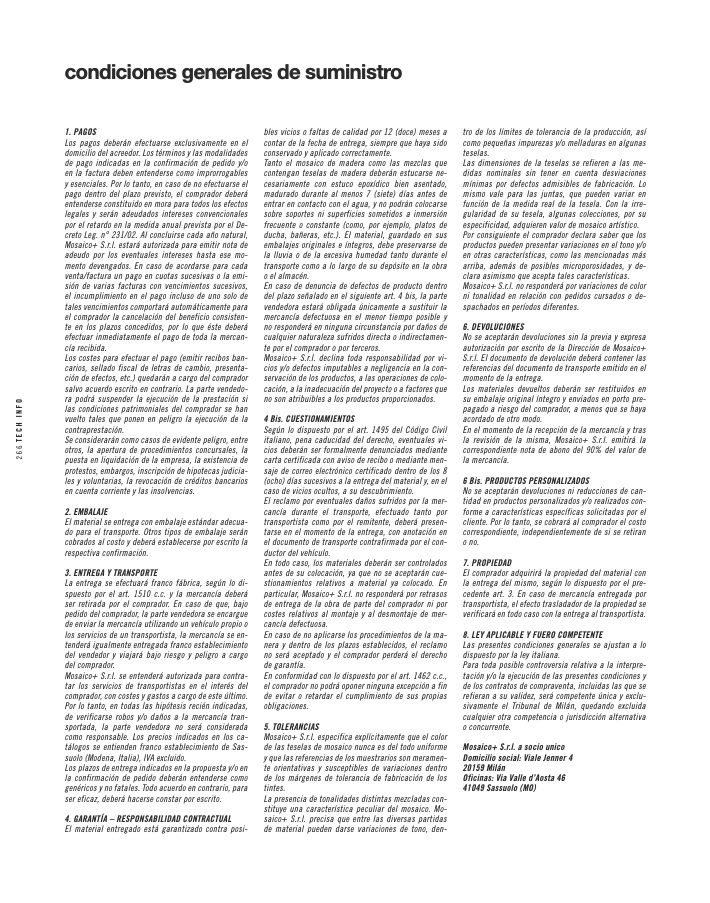 Mosaico+ S.r.l. no responderá por variaciones de color