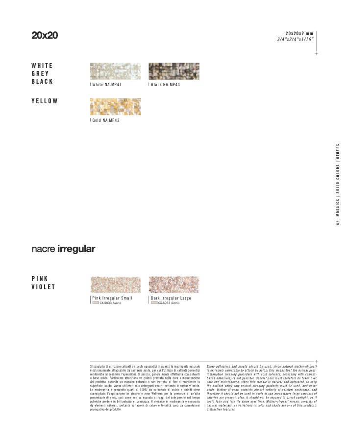 del prodotto: essendo un mosaico naturale e non trattato, al fine di mantenere la