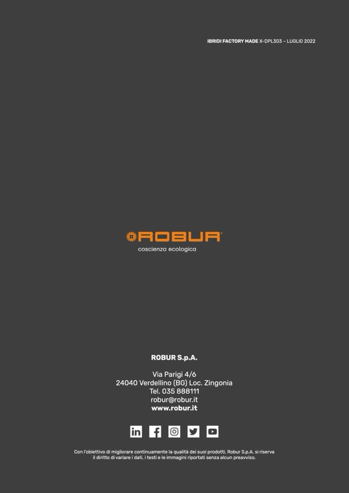 Con l’obiettivo di migliorare continuamente la qualità dei suoi prodotti, Robur S.p.A. si riserva