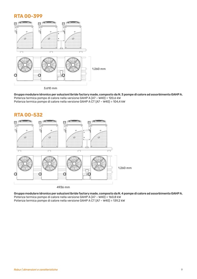 Gruppo modulare idronico per soluzioni ibride factory made, composto da N. 3 pompe di calore ad assorbimento GAHP A.
