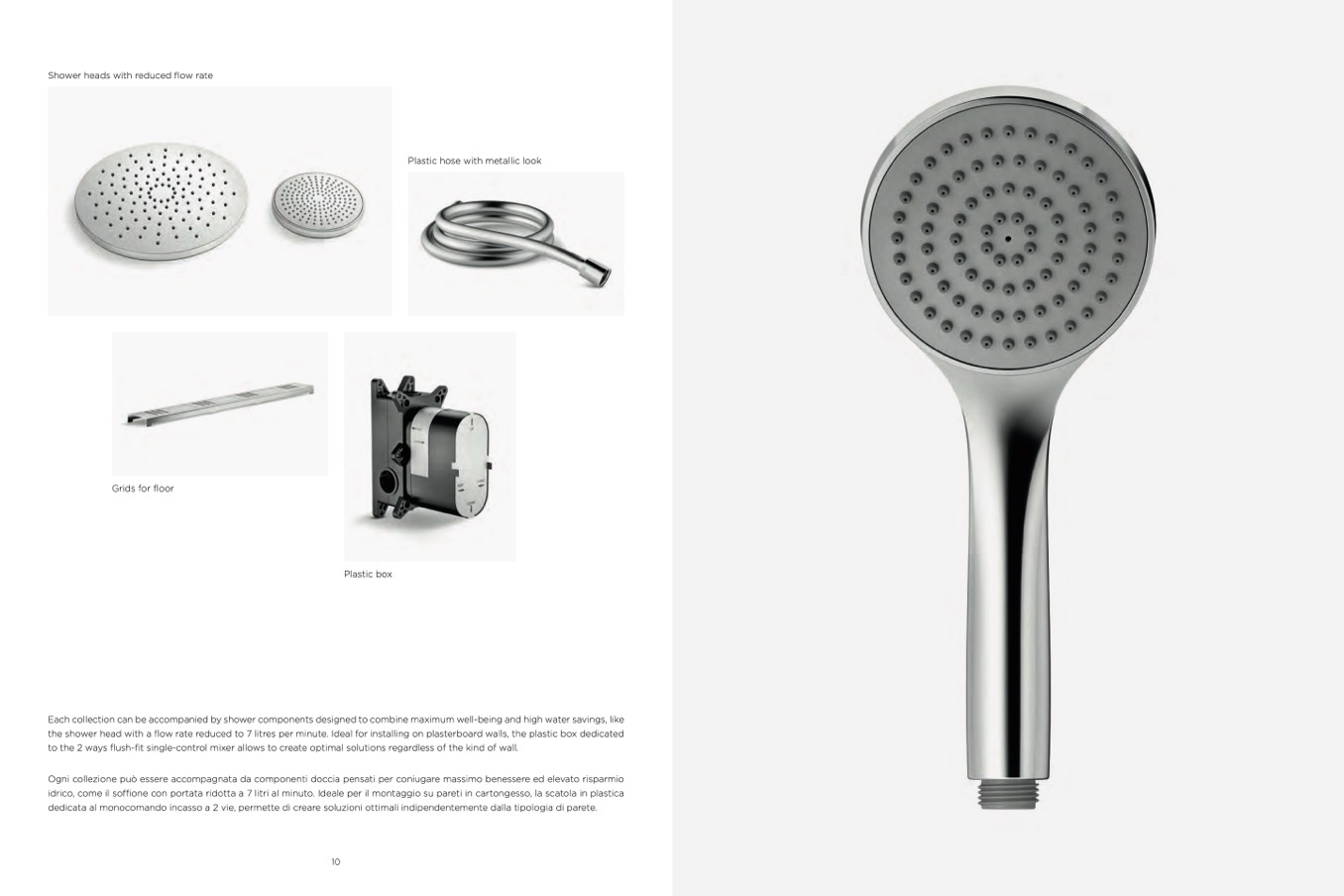Ogni collezione può essere accompagnata da componenti doccia pensati per coniugare massimo benessere ed elevato risparmio