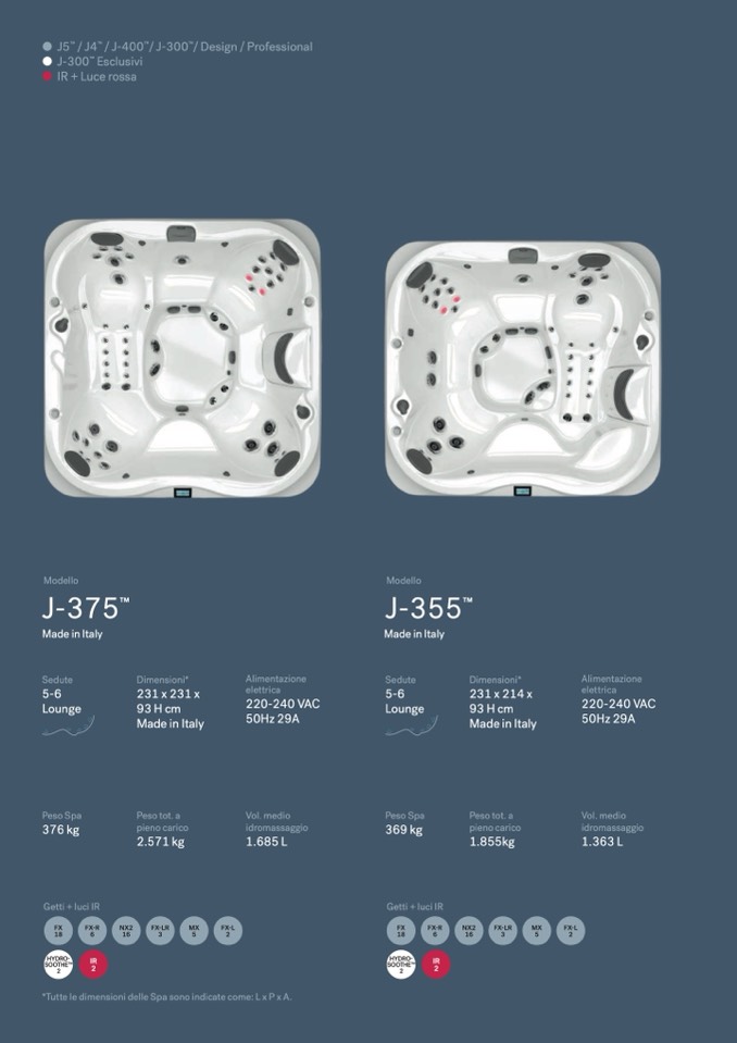 *Tutte le dimensioni delle Spa sono indicate come: L x P x A