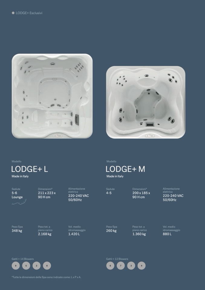 *Tutte le dimensioni delle Spa sono indicate come: L x P x A