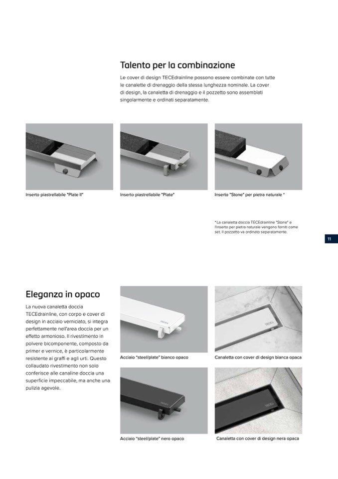 Le cover di design TECEdrainline possono essere combinate con tutte