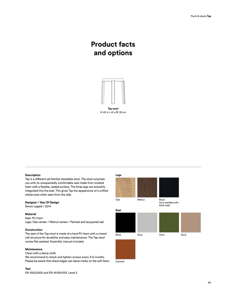 The seat of the Tap stool is made of a hard PU foam with a closed