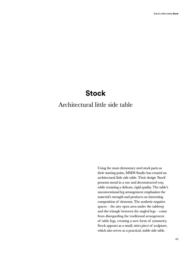 architectural little side table. Their design ‘Stock’