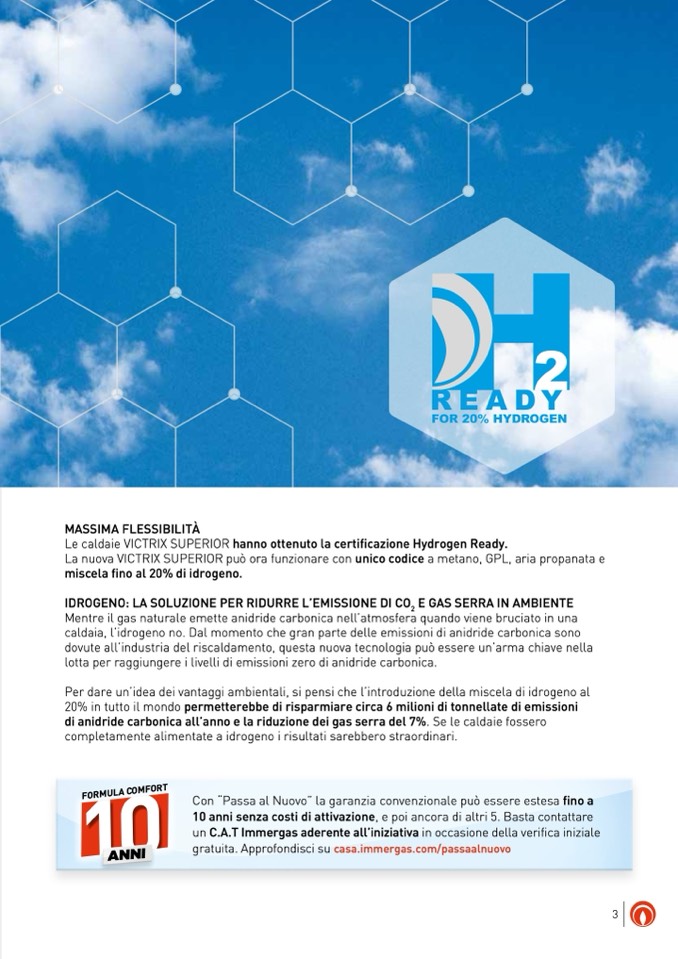 Le caldaie VICTRIX SUPERIOR hanno ottenuto la certificazione Hydrogen Ready.