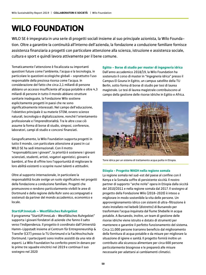Wilo Sustainability Report 2019 | COLLABORATORI E SOCIETÀ | Wilo Foundation