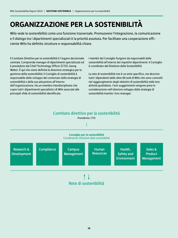 Wilo Sustainability Report 2019 | GESTIONE SOSTENIBILE | Organizzazione per la sostenibilità