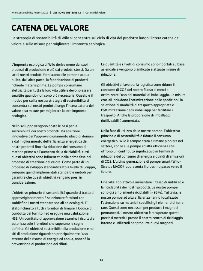 Wilo Sustainability Report 2019 | GESTIONE SOSTENIBILE | Catena del valore