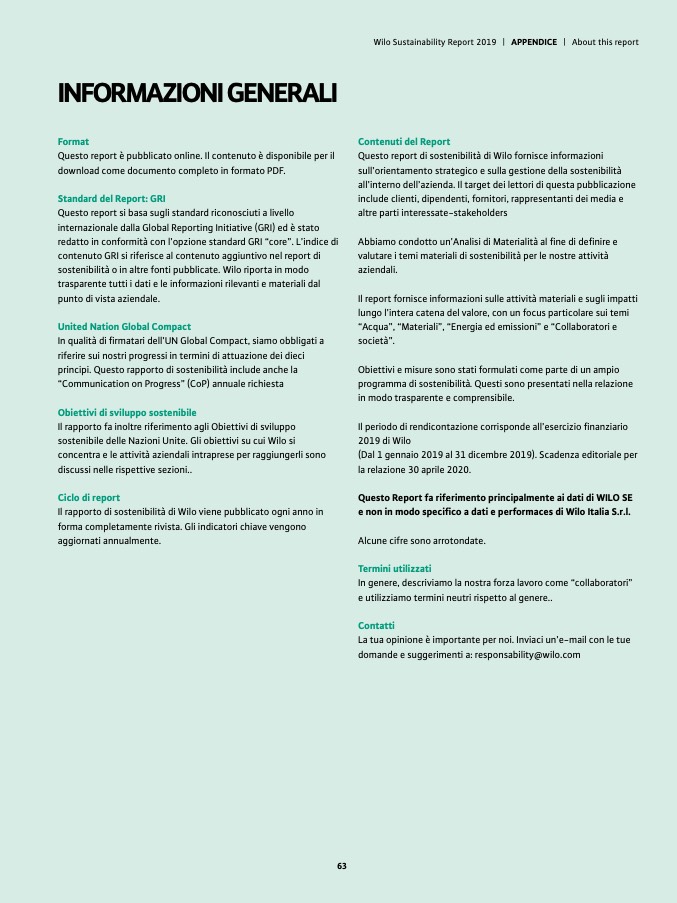 Wilo Sustainability Report 2019 | APPENDICE | About this report