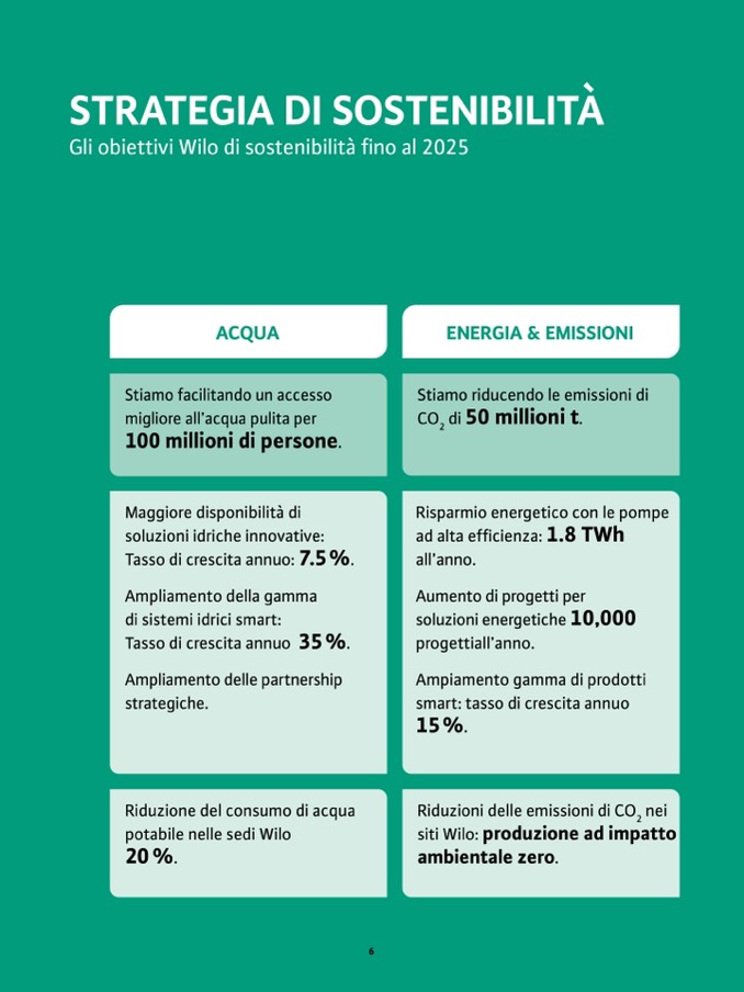 Gli obiettivi Wilo di sostenibilità fino al 2025