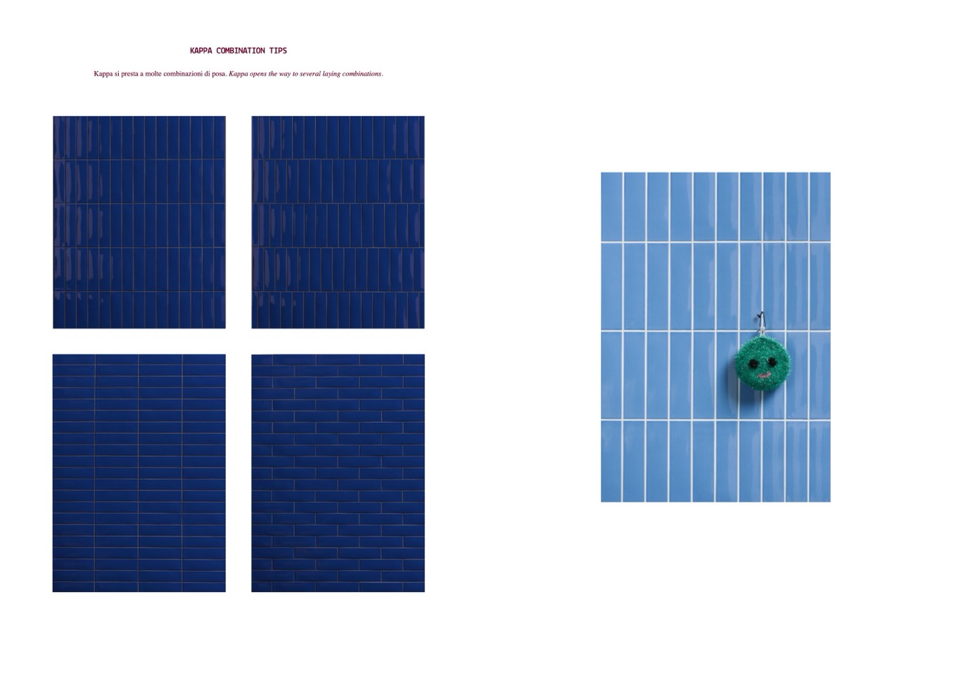 Kappa si presta a molte combinazioni di posa. Kappa opens the way to several laying combinations.