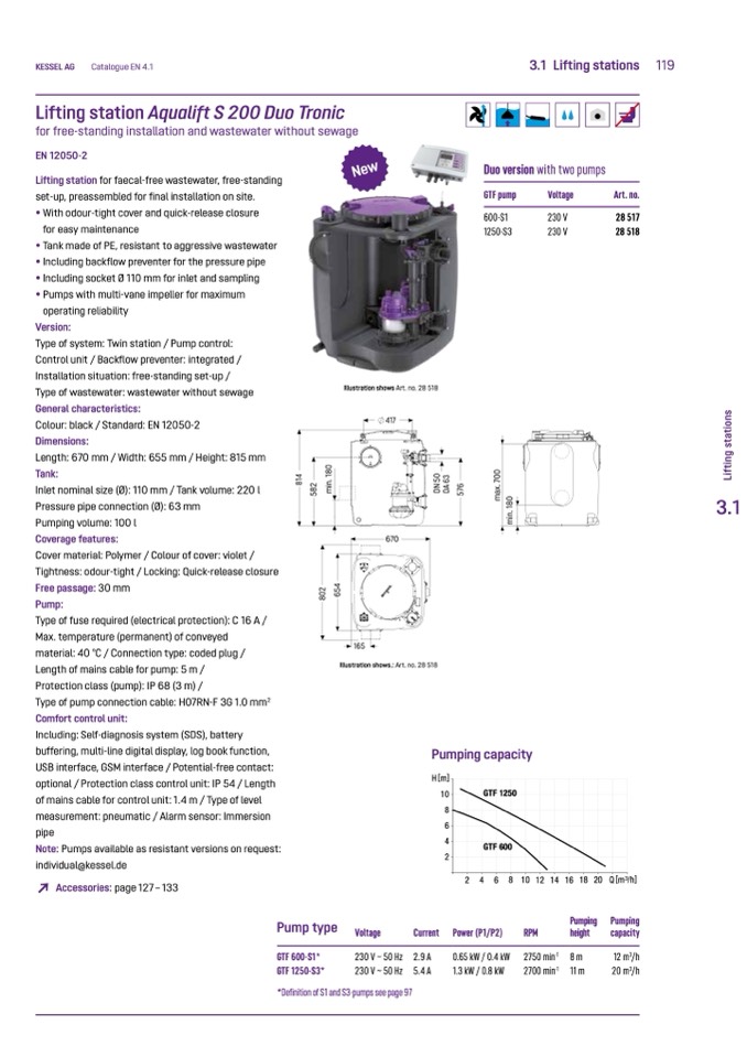 Inlet nominal size (Ø): 110 mm / Tank volume: 220 l