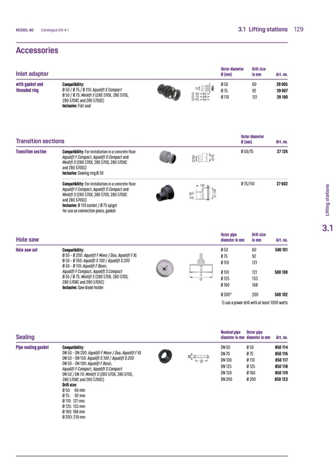 Ø 50 – Ø 110: Aqualift F Basic,