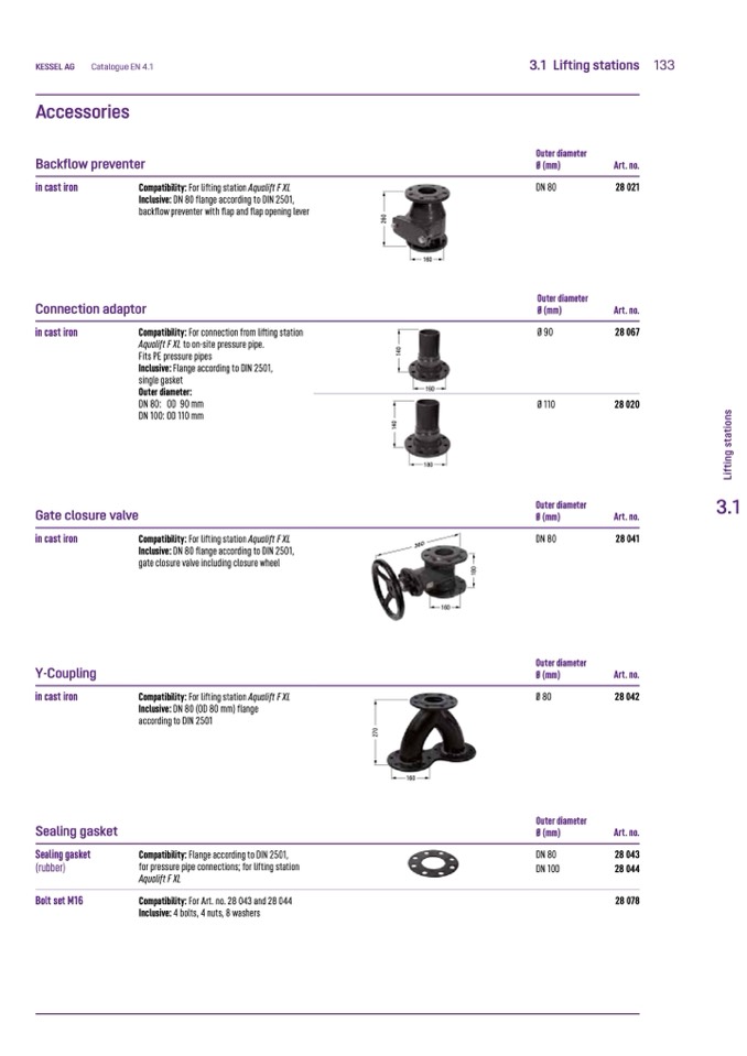 for pressure pipe connections; for lifting station