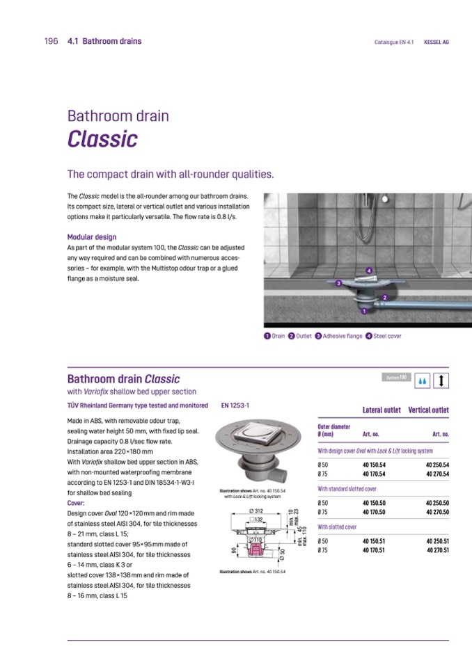 according to EN 1253-1 and DIN 18534-1-W3-I
