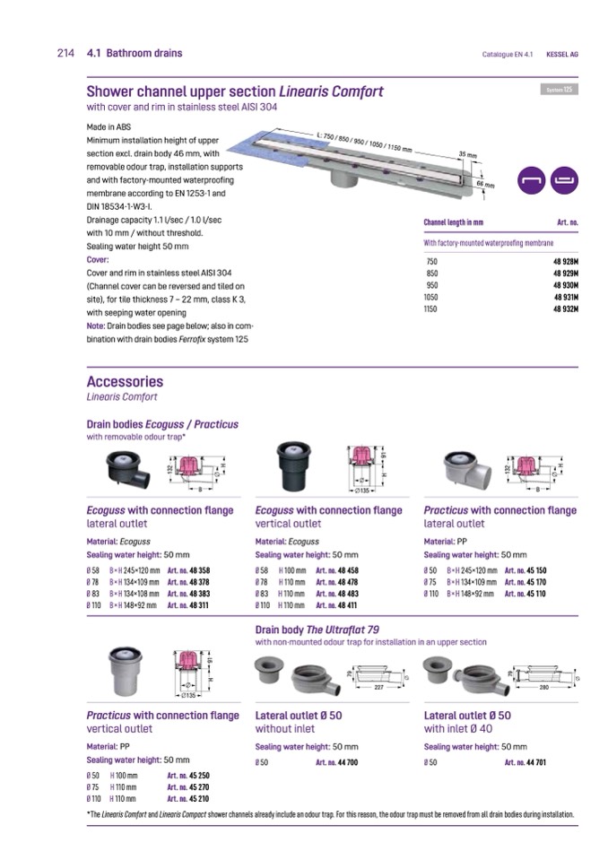 *The Linearis Comfort and Linearis Compact shower channels already include an odour trap. For this reason, the odour trap must be removed from all drain bodies during installation.