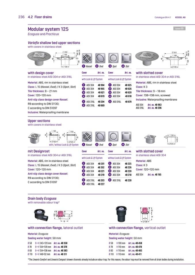 *The Linearis Comfort and Linearis Compact shower channels already include an odour trap. For this reason, the odour trap must be removed from all drain bodies during installation.