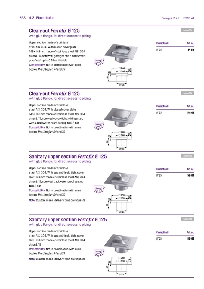 with a backwater-proof seal up to 0.5 bar