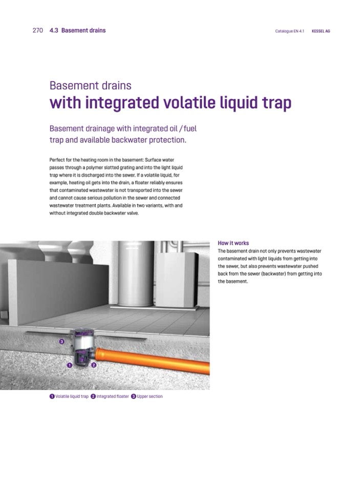 example, heating oil gets into the drain, a floater reliably ensures