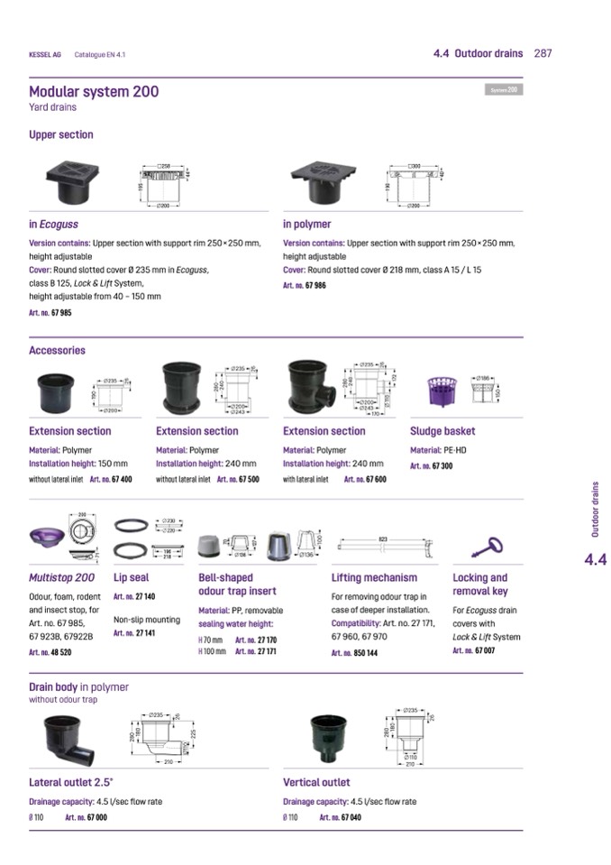 Drainage capacity: 4.5 l/sec flow rate