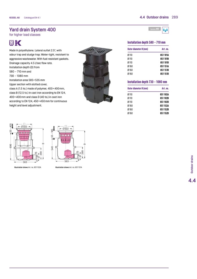 Drainage capacity 4.5 l/sec flow rate.