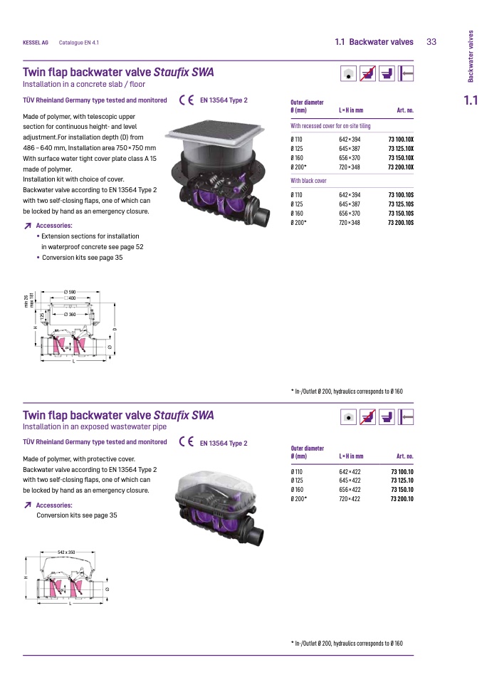 * In-/Outlet Ø 200, hydraulics corresponds to Ø 160