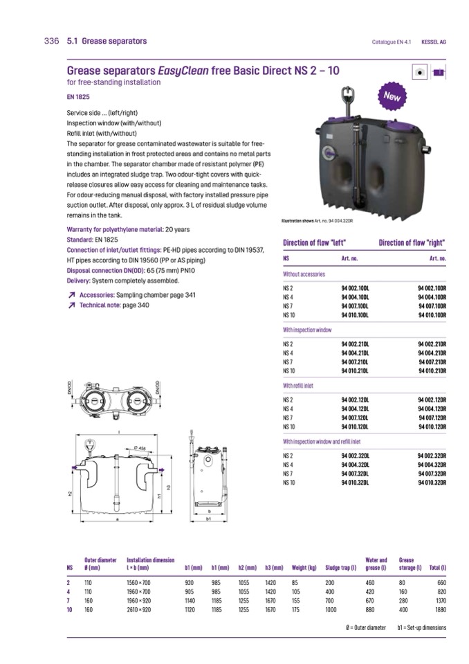 includes an integrated sludge trap. Two odour-tight covers with quick-