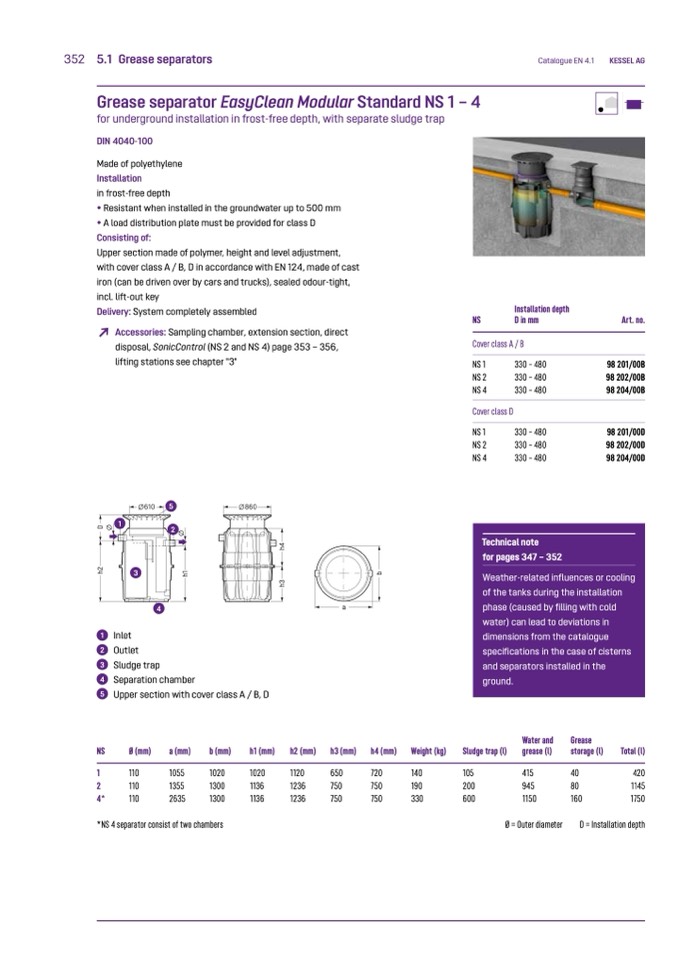 *NS 4 separator consist of two chambers