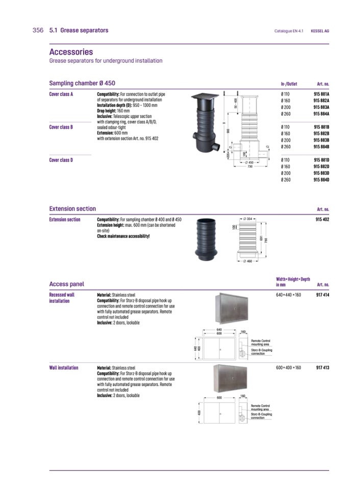 Compatibility: For sampling chamber Ø 400 and Ø 450