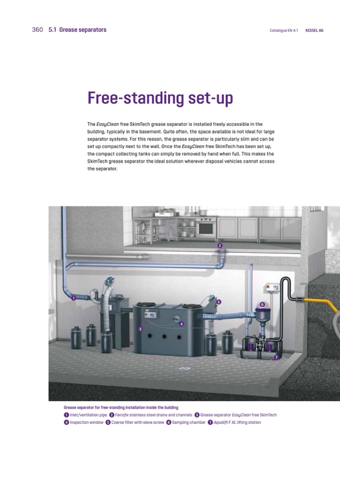 separator systems. For this reason, the grease separator is particularly slim and can be
