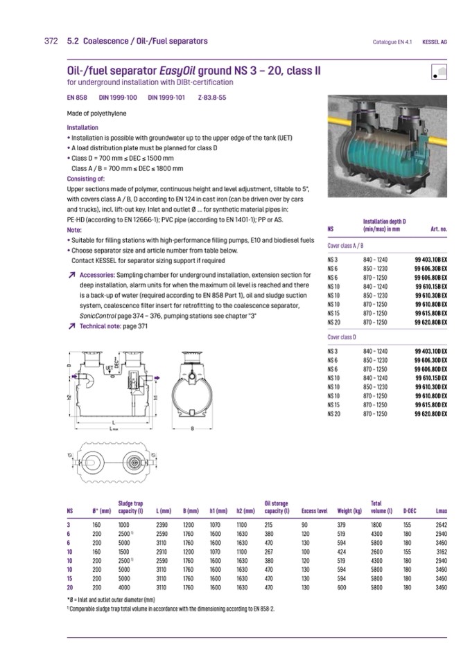 is a back-up of water (required according to EN 858 Part 1), oil and sludge suction