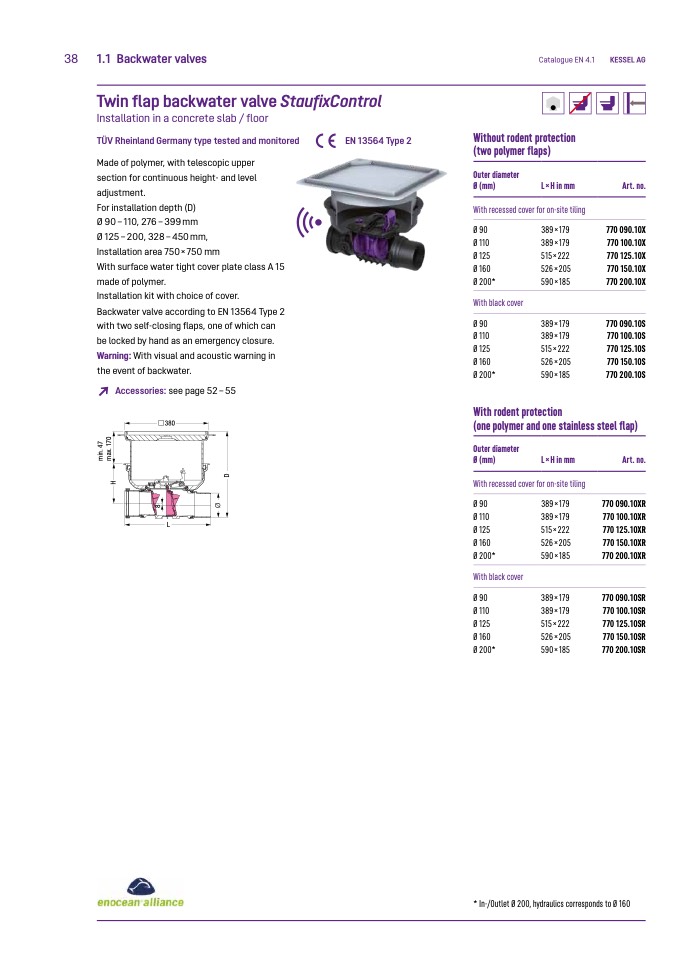 * In-/Outlet Ø 200, hydraulics corresponds to Ø 160