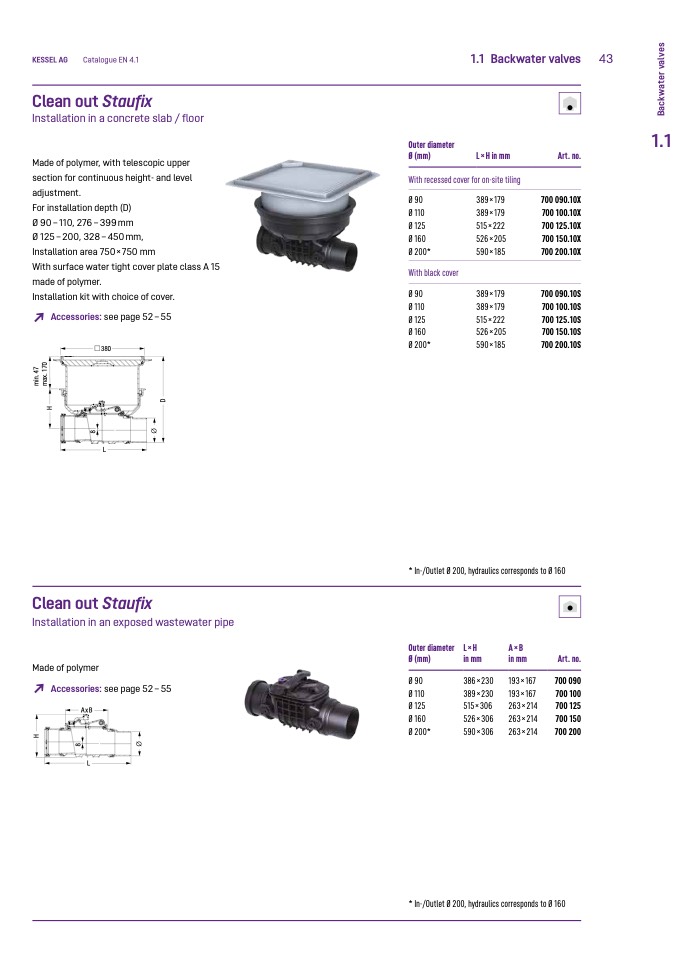 * In-/Outlet Ø 200, hydraulics corresponds to Ø 160