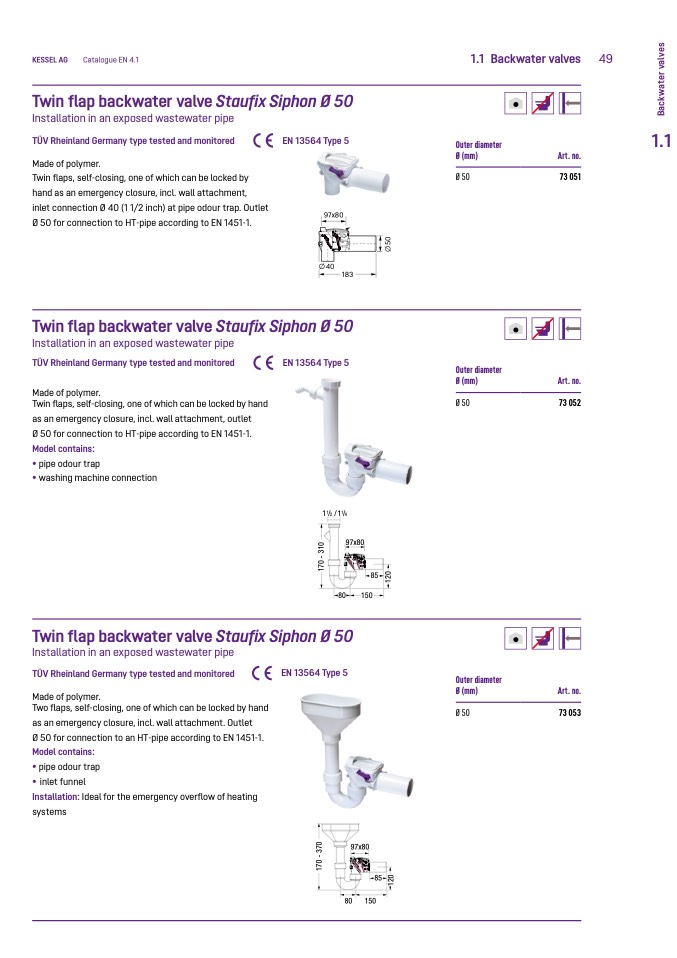 Ø 50 for connection to an HT-pipe according to EN 1451-1.