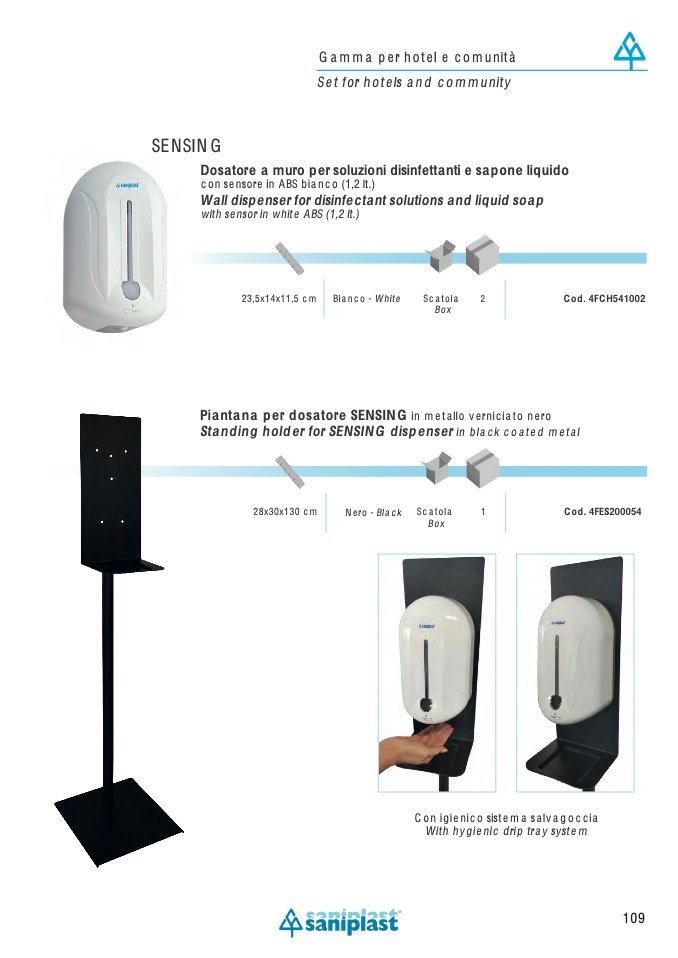 Standing holder for SENSING dispenser in black coated metal