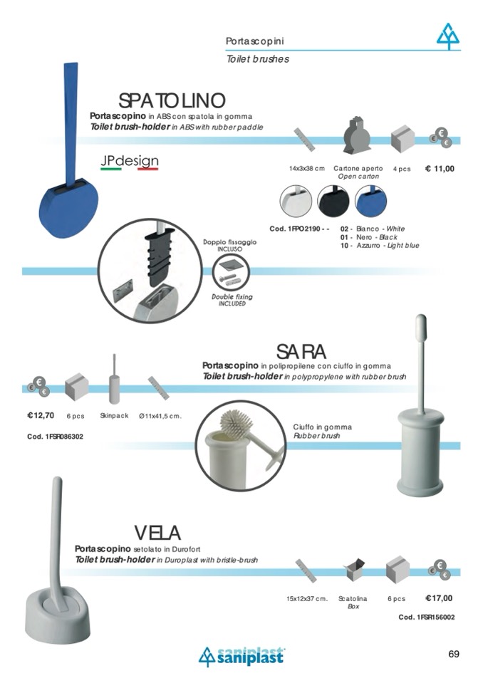 Toilet brush-holder in ABS with rubber paddle