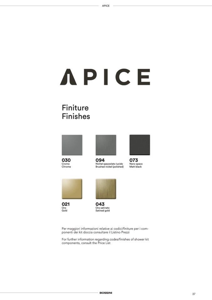 Per maggiori informazioni relative ai codici/finiture per i com-