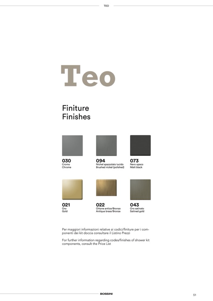 Per maggiori informazioni relative ai codici/finiture per i com-