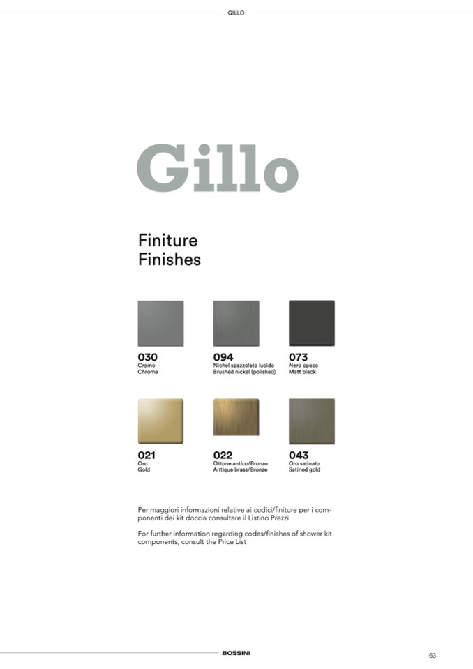 For further information regarding codes/finishes of shower kit