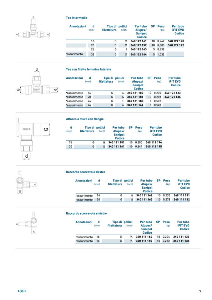 Tee con filetto femmina laterale