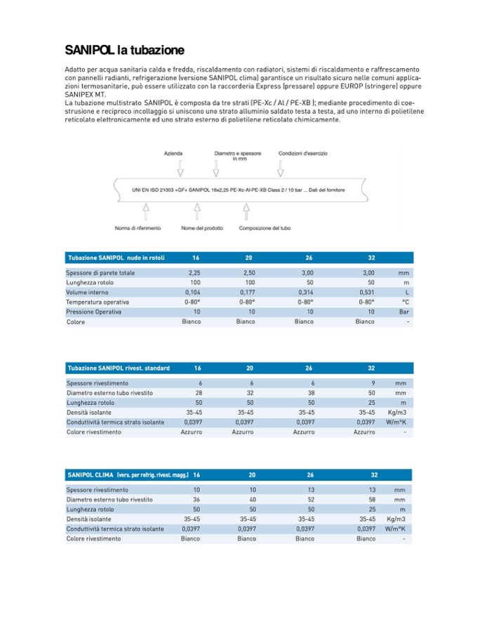 UNI EN ISO 21003 +GF+ SANIPOL 16x2,25 PE-Xc-Al-PEX-BXB Class 2 / 10 bar ... Dati del fornitore