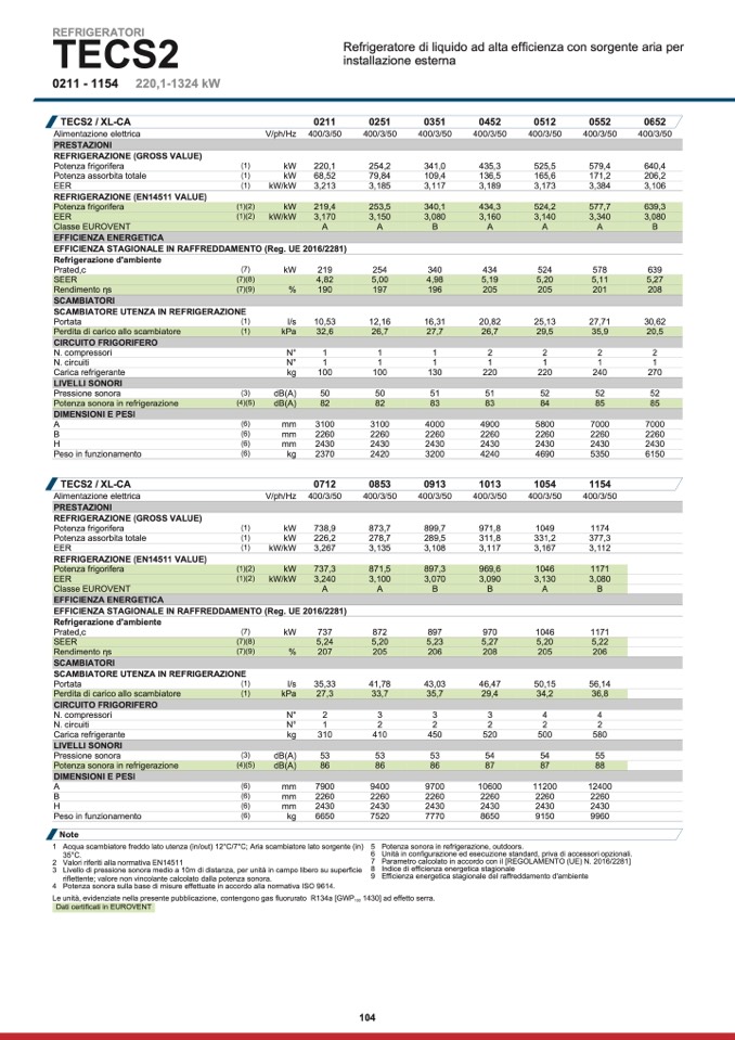 Le unità, evidenziate nella presente pubblicazione, contengono gas fluorurato R134a [GWP