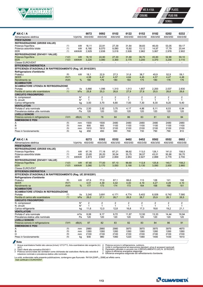 Dati certificati in EUROVENT