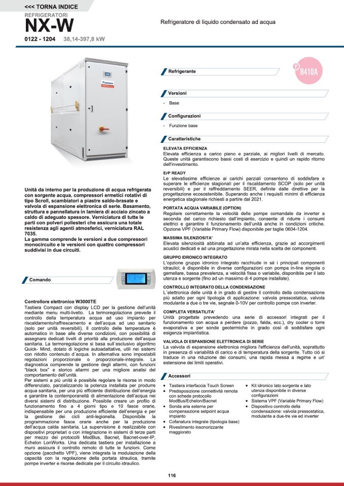 funzionamento con acqua a perdere (pozzo, falda, ecc.), dry cooler o torre