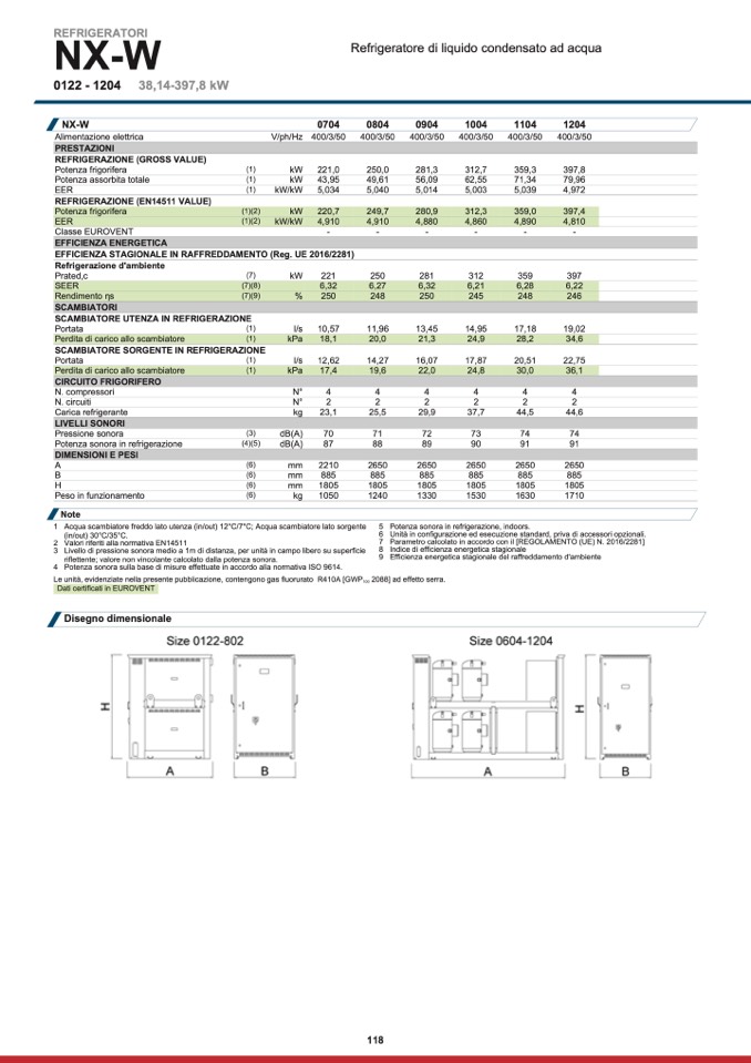 1 Acqua scambiatore freddo lato utenza (in/out) 12°C/7°C; Acqua scambiatore lato sorgente