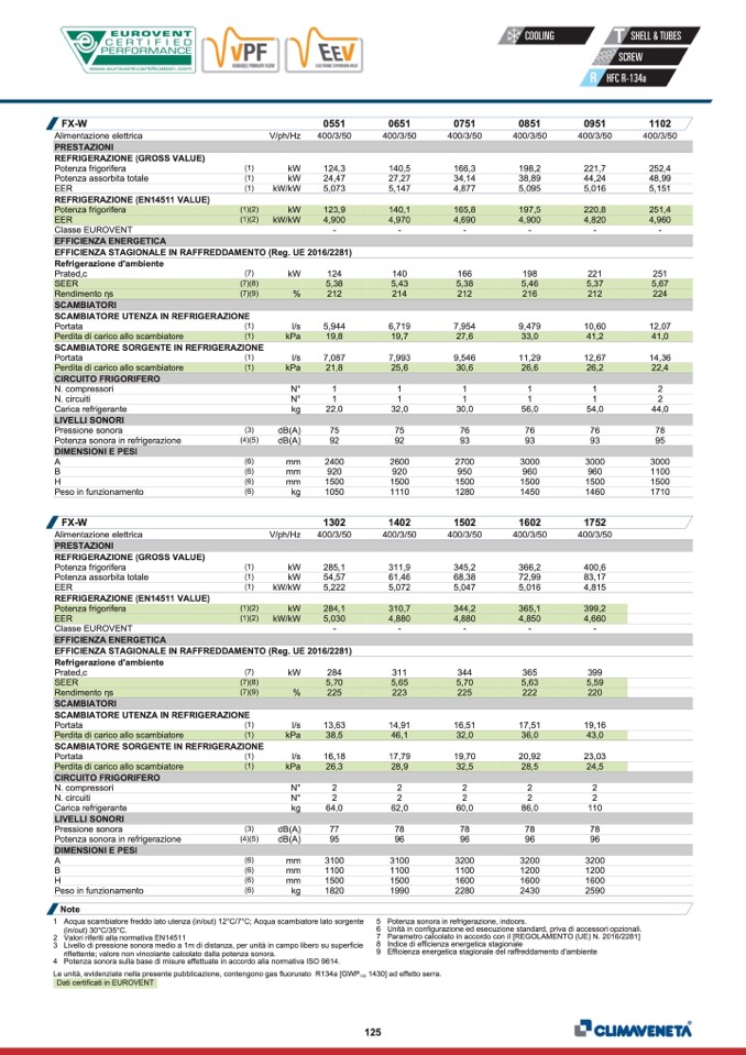 Dati certificati in EUROVENT