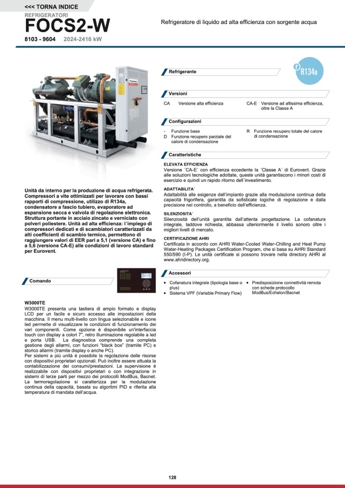 Certificata in accordo con AHRI Water-Cooled Water-Chilling and Heat Pump